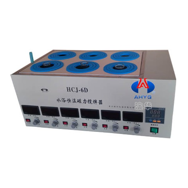 一、【HCJ-6D六位磁力搅拌数显恒温水浴锅】双列6头搅拌,可单独控制,LED数显控温、精度高。速度微电脑蕊片数显直观,转速平稳,6孔同温,加热器采用浸入式,节能加热快。适用于同温不同速状态下的实验。广泛应用于化工分析、医药卫生、生物培养、科研教学、环保、地质普查、精密计量、海洋研究、土壤分析等部门。